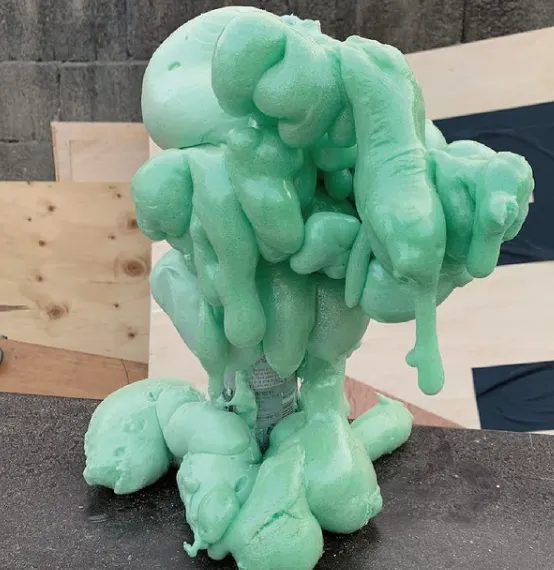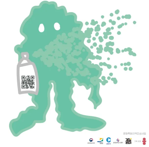 리모델링 중 단열을 위해 쏘는 폼(form)이 쏟아져 나오다가 아래 마스코트같은 모양으로 굳어버렸어요.(인생공방에 가시면 직접 만날 수 있어요) 그 몽글하고 말랑한 모습처럼 사람들이 스트레스 없이 유연한 삶을 살았으면 좋겠다는 바람에서 이름을 붙였다고 합니다. ※ 마스코트 이름: 오구이폼(59-2 form), 59-2번지의 우레탄폼